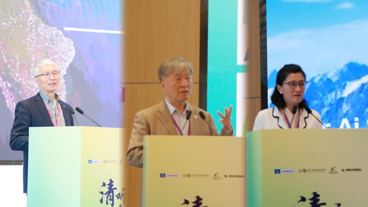 联合国教科文组织东亚地区办事处主任兼代表夏泽翰教授在致辞中指出,应对气候变化需政策与个人层面的共同努力。他介绍了教科文组织在政府间水文计划、国际地球科学与地质公园计划、冰川保护等方面的重点工作,强调与清华大学等机构合作推进“碳中和创新项目”及青少年参与环保行动的重要性,呼吁大家以科学、教育和协作推动地球可持续未来。