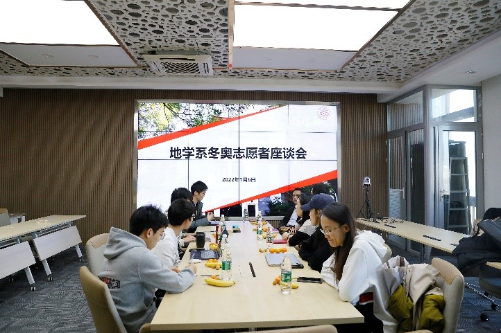 2022年1月6日,为充分了解志愿者的想法与需求,确保志愿者全身心投入到冬奥志愿服务中,清华大学地学系在蒙民伟科技大楼S818举行了2022北京冬奥会志愿者座谈会。地学系党委副书记卢麾副教授、青年委员俞乐副教授、组织委员陈亚微老师以及地学系参加本次冬奥会志愿服务工作的6名研究生参加座谈。
