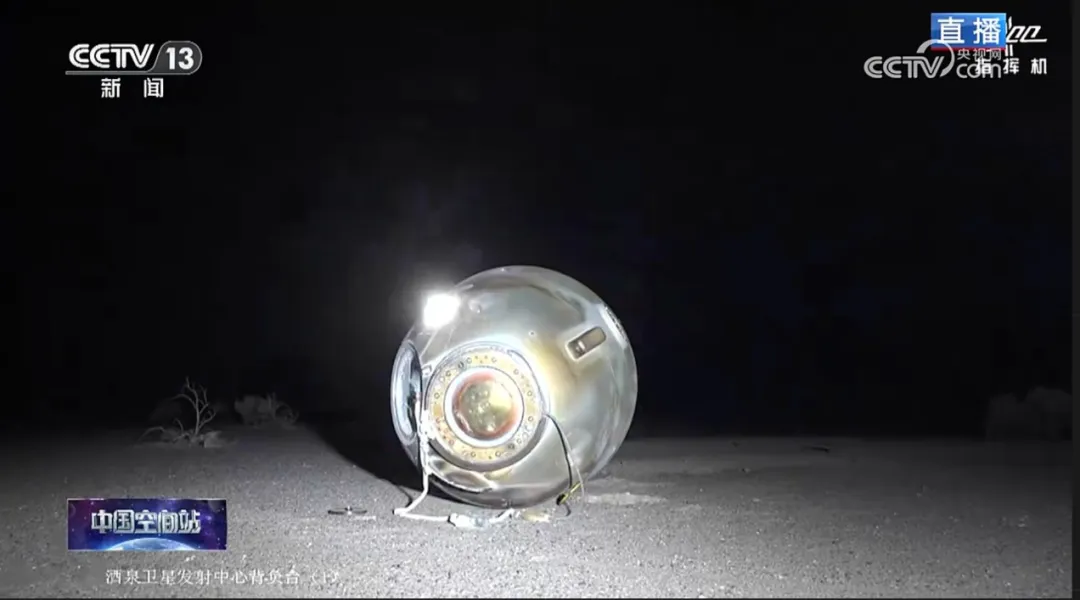 神舟十八号载人飞船返回舱着陆(图片来源:央视频视频截图)