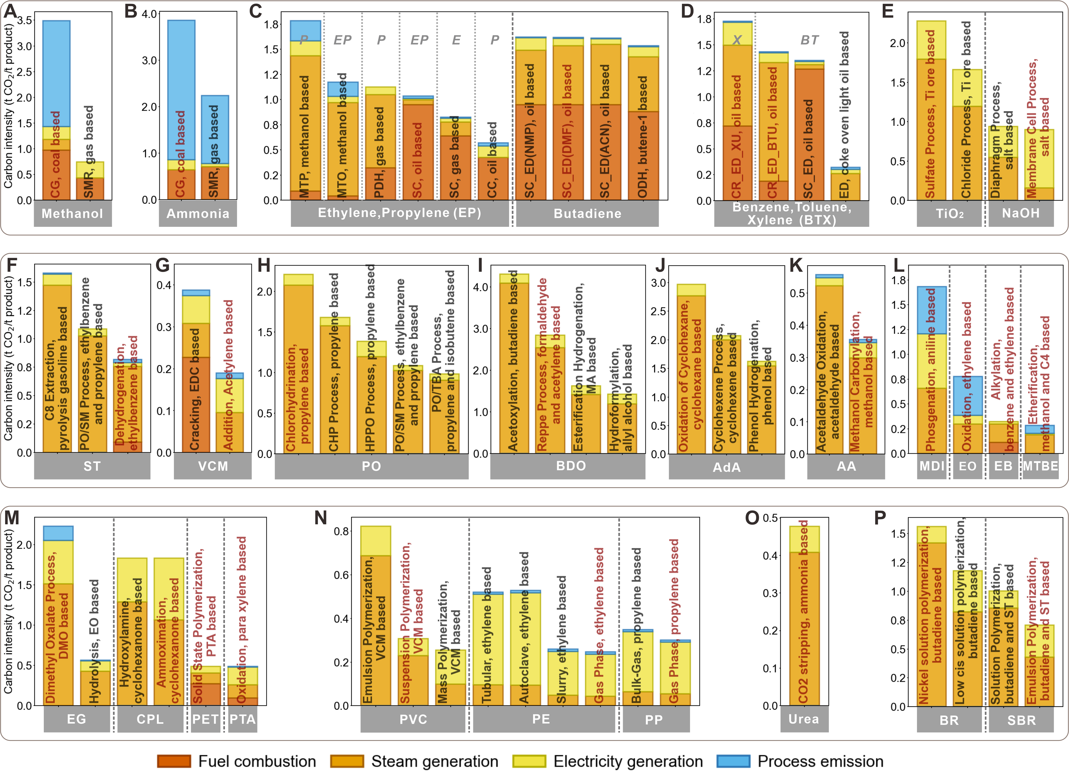 图2. 细分生产工艺、排放单元的关键产品碳排放强度