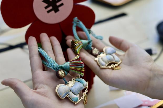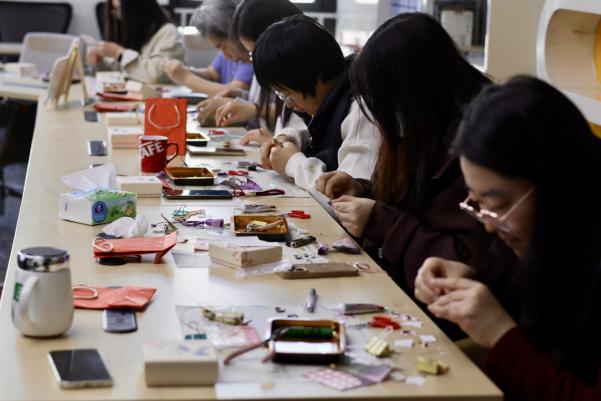 本次活动的主题是“宋锦五福,马到成功”挂饰制作。在随后的手作实践环节,老师耐心讲解制作步骤、示范操作技巧。女教职工们认真聆听、细致地拼接组装,将精心挑选的宋锦面料与小马造型巧妙相融,在制作间感受传统工艺的温度。挂饰融合“五福”吉祥意象与马年“马到成功”的美好祝愿,每一件成品都兼具古典韵味与专属心意。现场大家相互交流心得、彼此协助点缀,欢声笑语不断,浓郁的节日氛围与非遗匠心的温度交织弥漫。