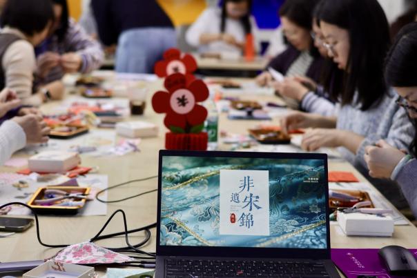 宋锦作为国家级非物质文化遗产,被誉为“锦绣之冠”,以纹样精致、色彩典雅、技艺精湛著称,承载着中华千年丝织文化的深厚底蕴。活动伊始,特邀老师围绕宋锦的历史渊源、工艺特点、文化内涵展开生动讲解,带领大家领略传统织锦技艺的独特魅力,感受非遗匠心之美。